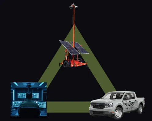 Triple Guard is Atlas Patrol’s layered security solution designed to deter, detect, and respond to criminal activity before losses occur. It combines a mobile surveillance trailer with AI-assisted cameras, live remote monitoring, and on-the-ground patrol or response. This creates constant visibility, real-time intervention, and documented accountability. It is not just a camera trailer. It is an active security system.